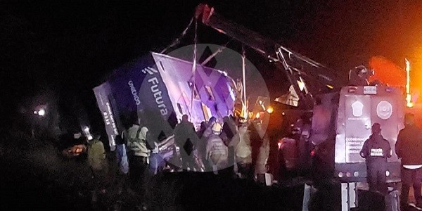Un camión de transporte público de la empresa ‘Futura’ volcó esta madrugada dejando un saldo de 10 personas fallecidas y al menos 27 más lesionadas.