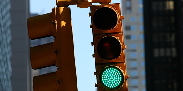 Cuando los semáforos se encuentren en luces intermitentes debes cruzar con precaución disminuyendo la velocidad.